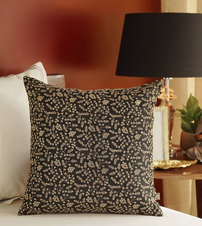 Black Cotton Embroidered Cushion Cover