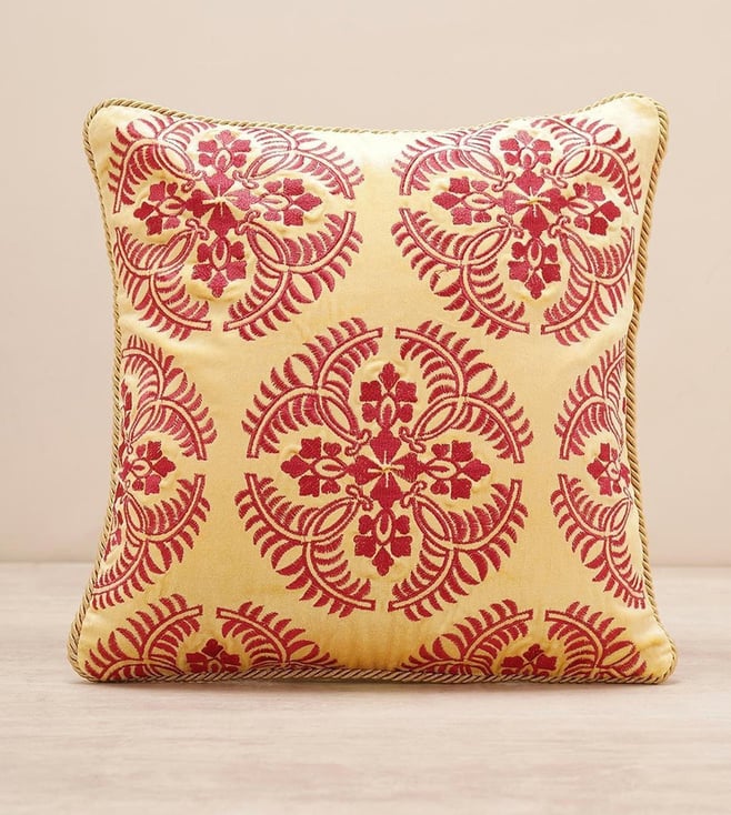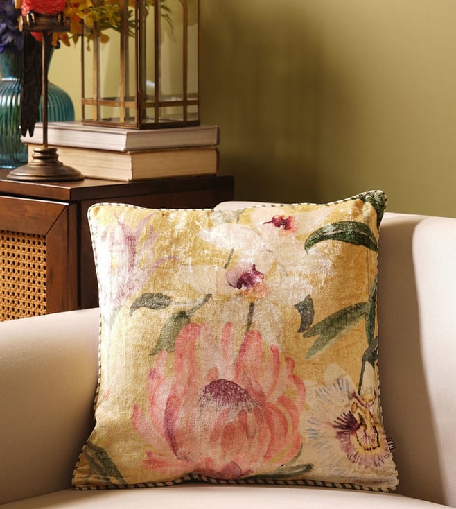 Yellow Viscose Velvet Embroidery Cushion Cover