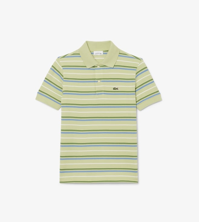 Kids Green Striped Short Sleeves Polo T-Shirt