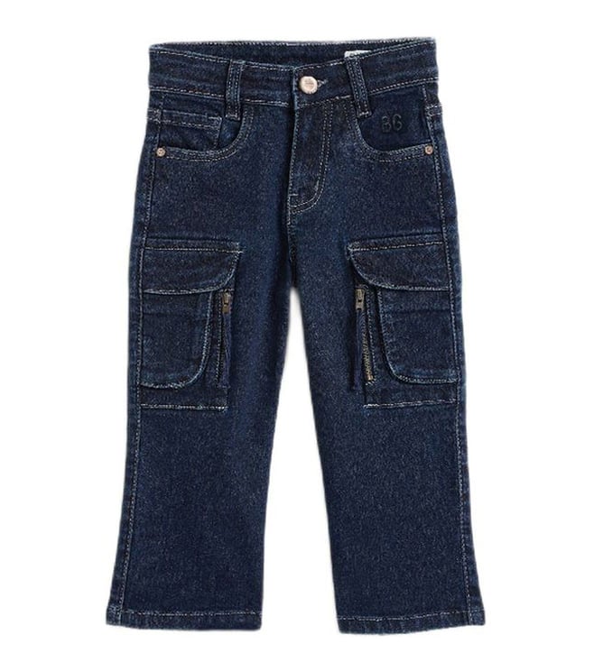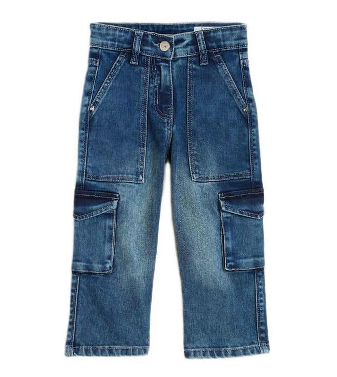 Girls Denim Blue High Rise Comfort Fit Cargo-Pockets Jeans