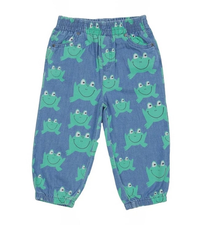 Kids Blue Frog Printed Denim Joggers