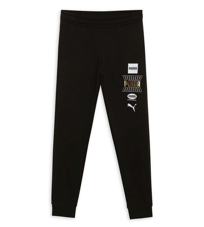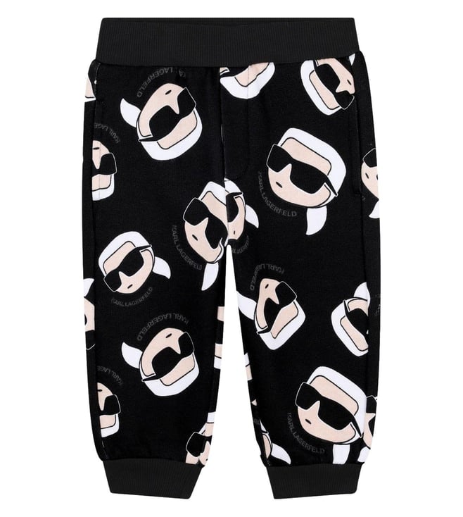 Kids Black Printed Cotton Regular Fit Trackpants