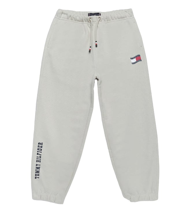 Boys White Regular Fit Graphic Printed Sweat Pants