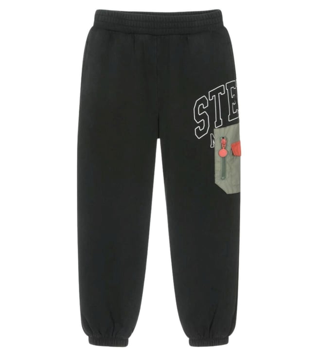 Boy Black Embroidered Regular Fit Sweat Pants