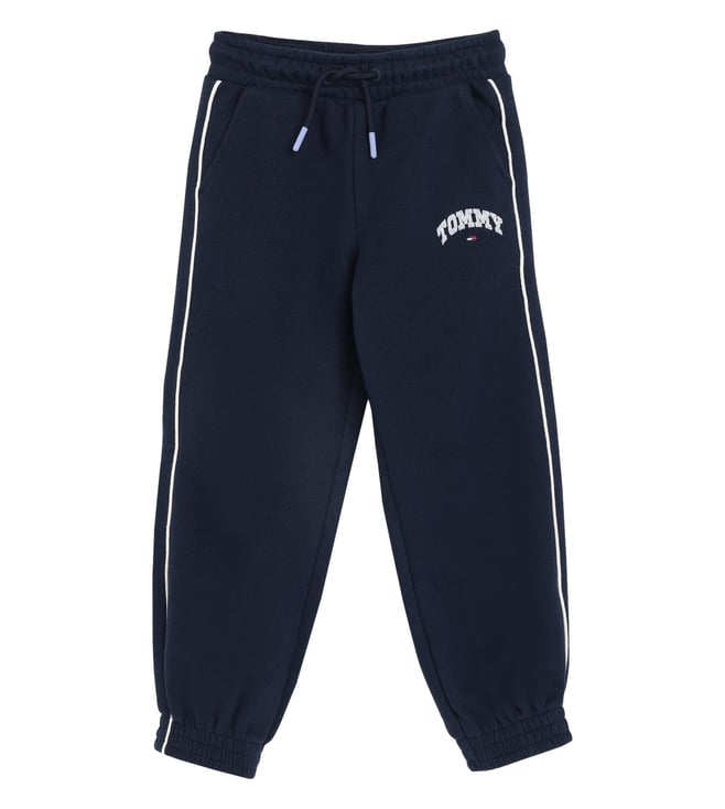 Navy Cotton Relaxed Fit Logo Printed Joggers