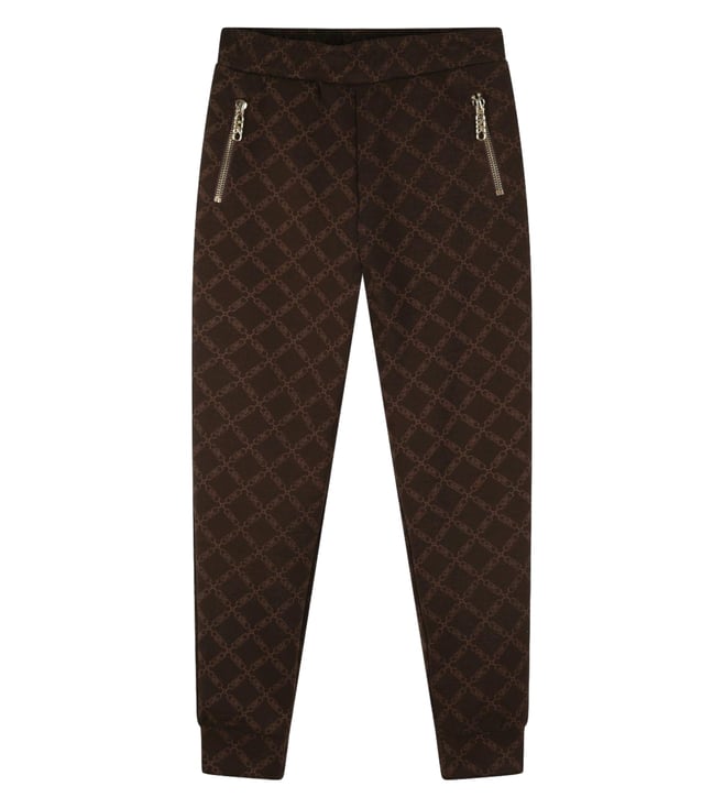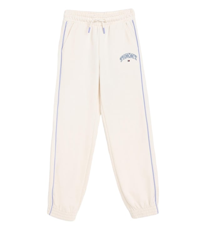 Cream Cotton Relaxed Fit Logo Printed Joggers