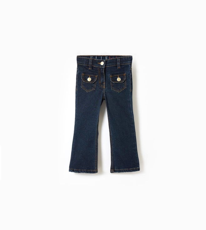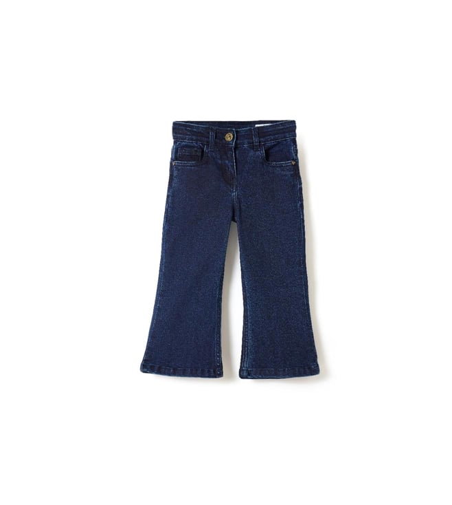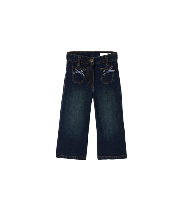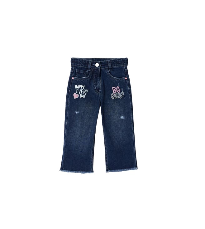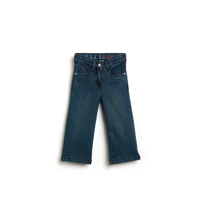 Blue Girls Mid-Wash Straight Fit Mid Rise Jeans