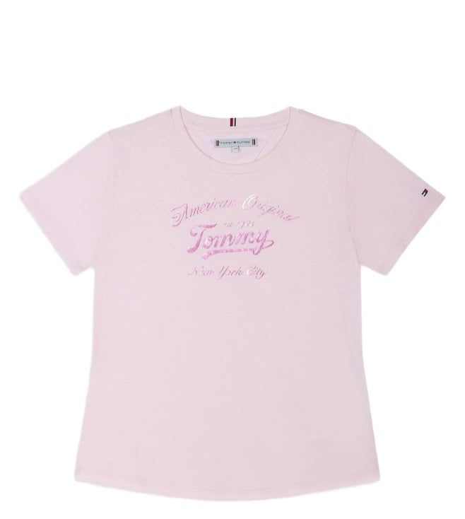 Girls Pink Typographic Printed Regular Fit T-Shirt