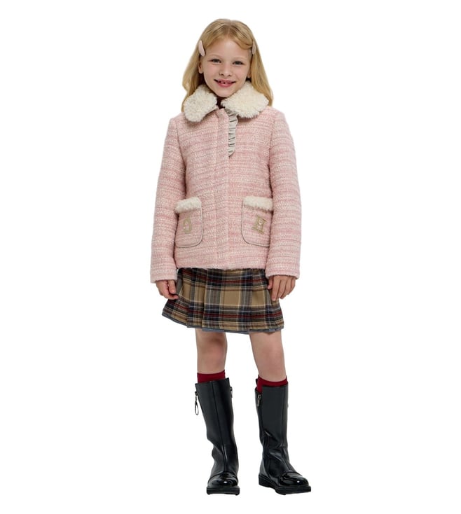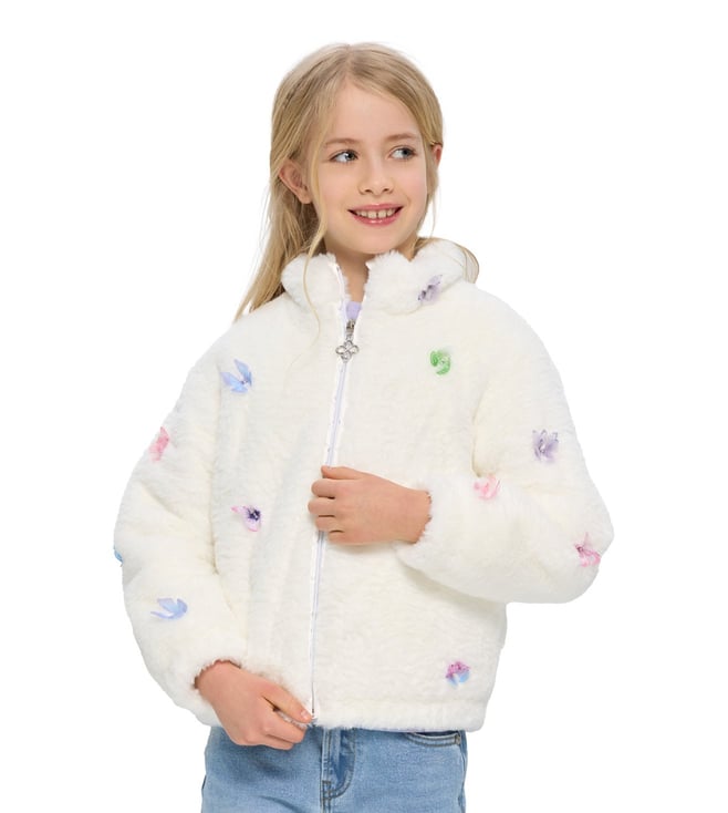 Ecru Outerwear Soft Fur Regular Fit Bomber Jacket with Butterflies