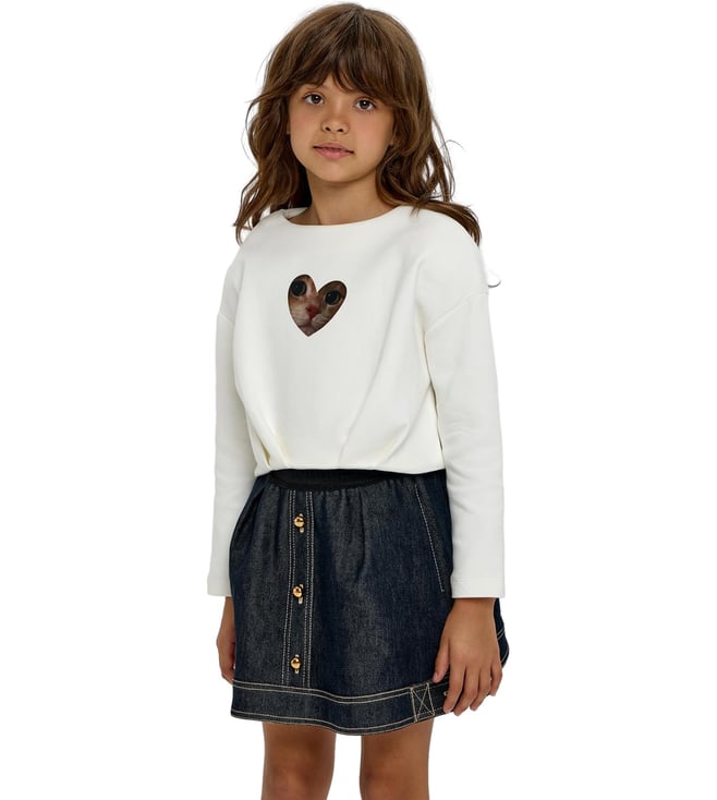 White Fashion Rebellion Printed Stylish Cropped Decorated Catty Regular Fit Sweatshirt