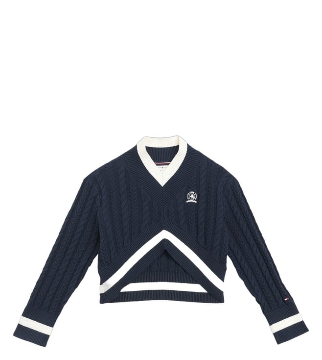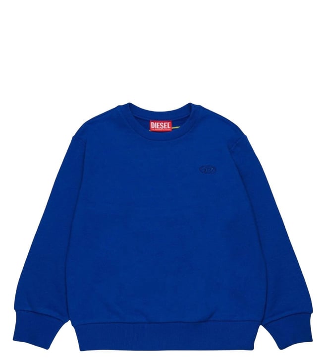 Blue Cotton Relaxed Fit Textured Sweater