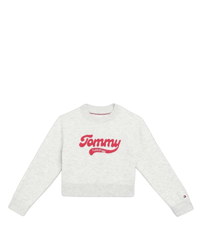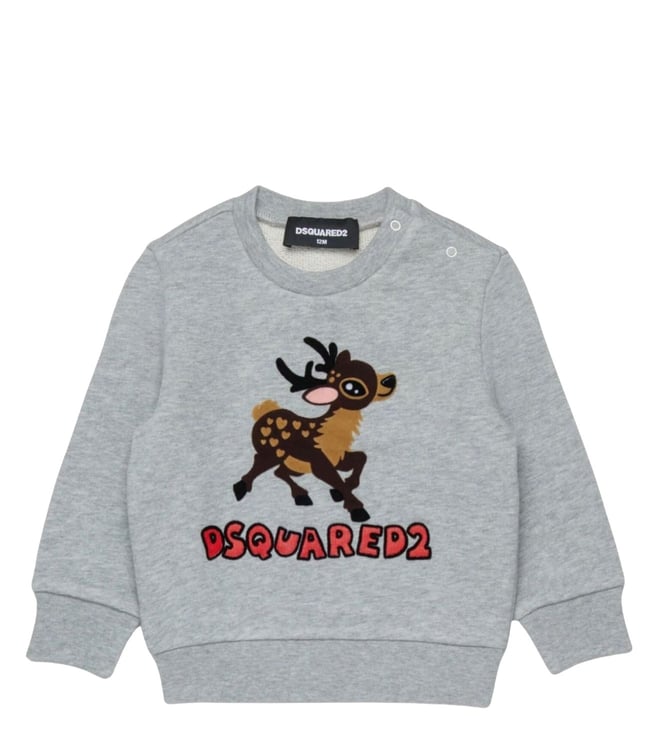 Grey Cotton Regular Fit Logo Printed Sweater