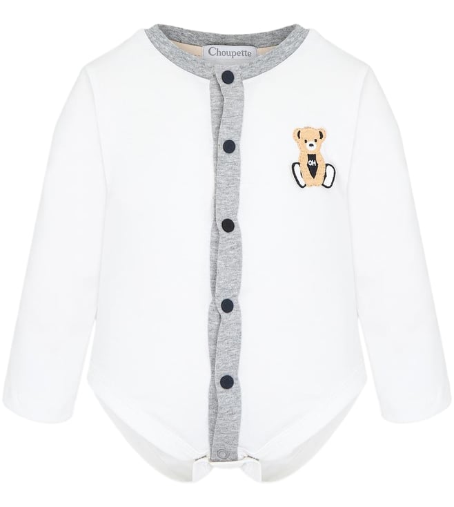 Kids White Teddy Bear Print Comfort Fit Romper