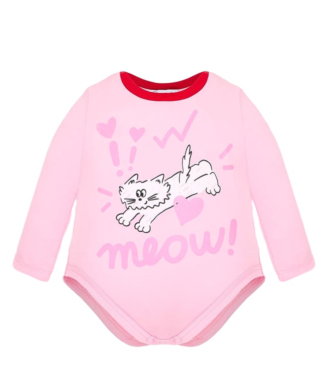 Baby Girls Pink Bear & Rainbow Printed Comfort Fit Romper - Set of 2