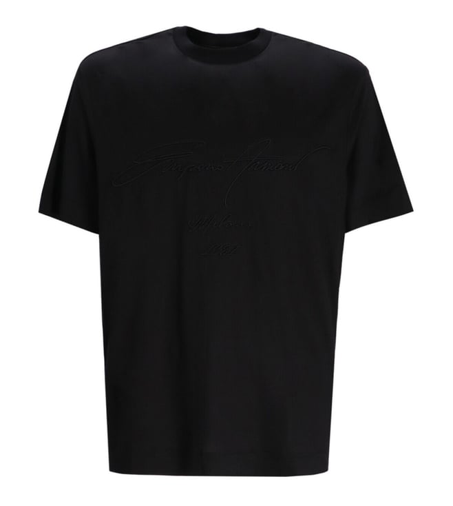 Black Round Neck Textured T-Shirt