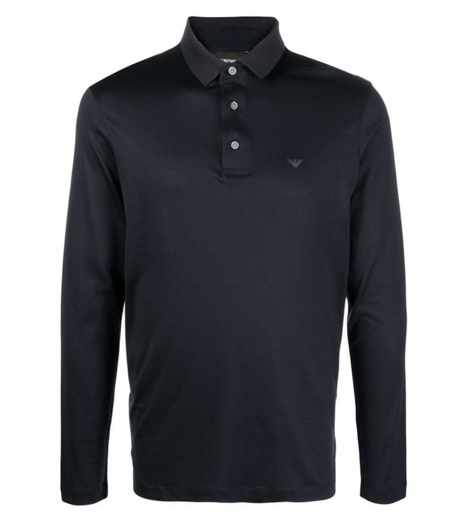 Blue Regular Fit Logo Long Sleeve Polo