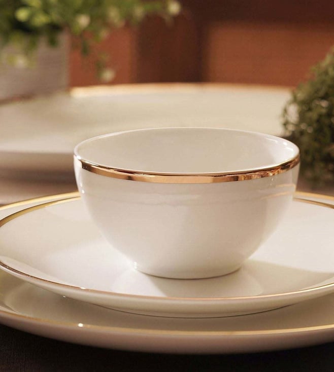 White Ceramic Gold Rim Small Bowls (300ml) - Set of 2