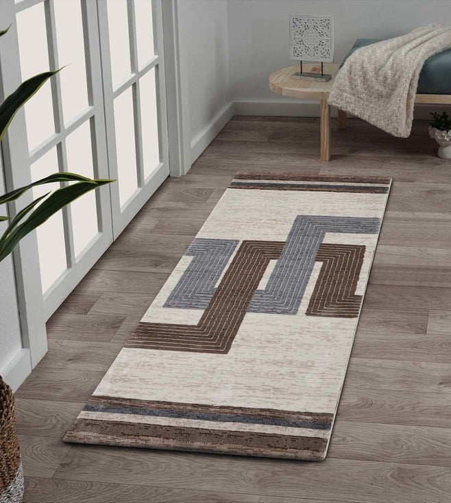 Cream & Blue Viscose Abstract Carpet (4x6 Feet)