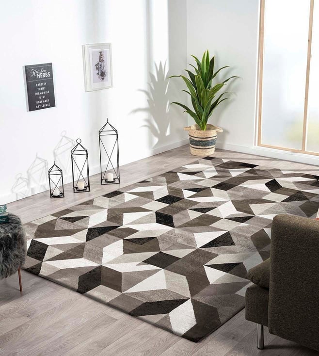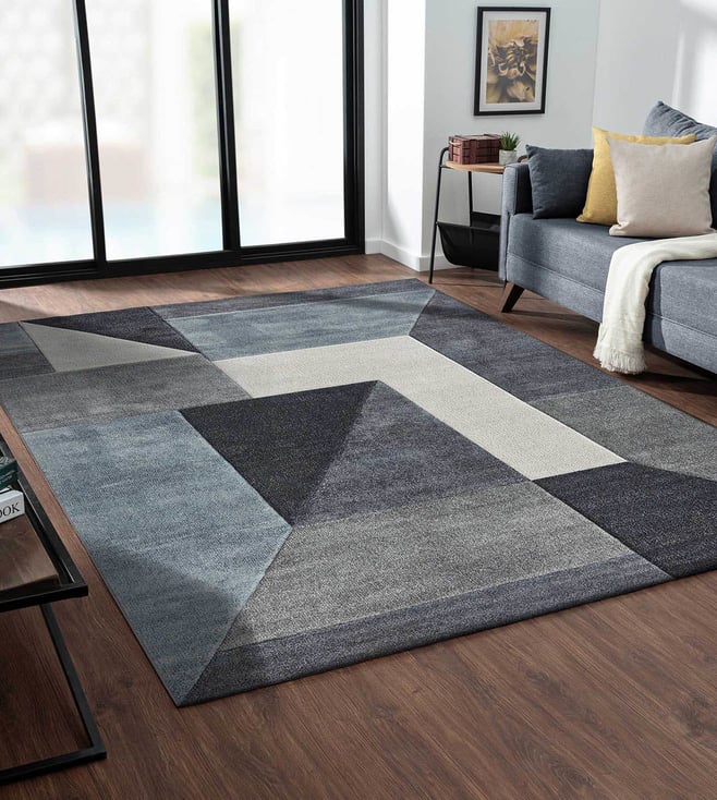 Light Blue & Grey Geometric Machine Made Carpet - Medium (230 cm x 160 cm)
