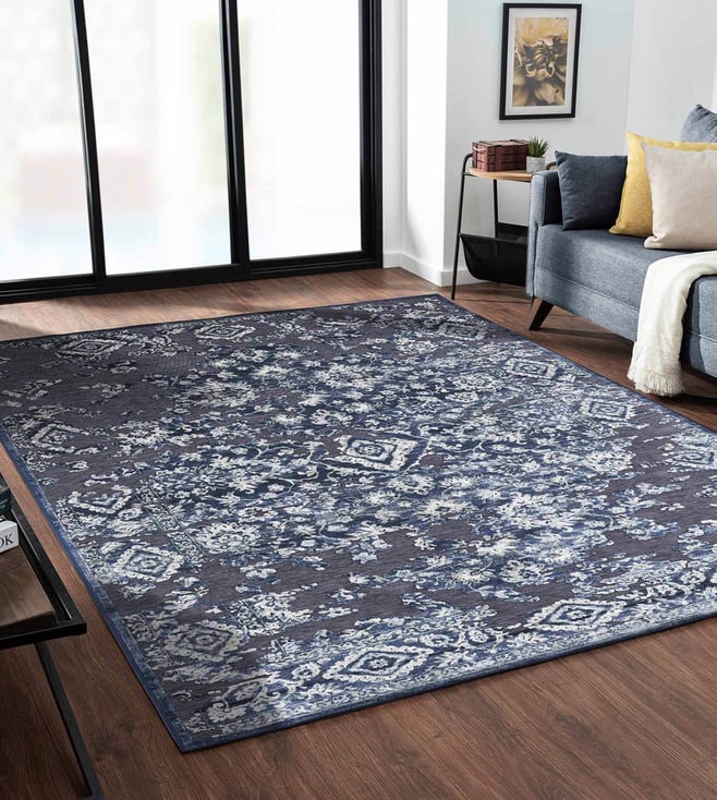 Blue & Grey Viscose Classical Carpet (4x6 Feet)