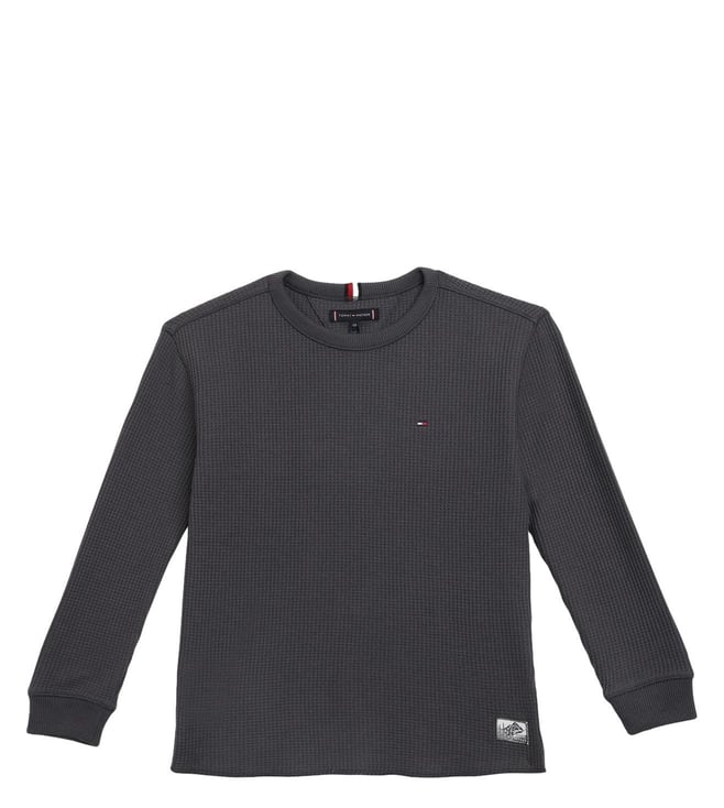 Grey Cotton Relaxed Fit Textured T-Shirt