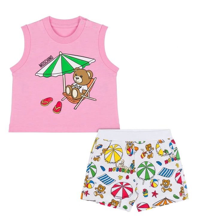 Kids Multi Teddy Bear Print Fitted Tank Top & Shorts Set