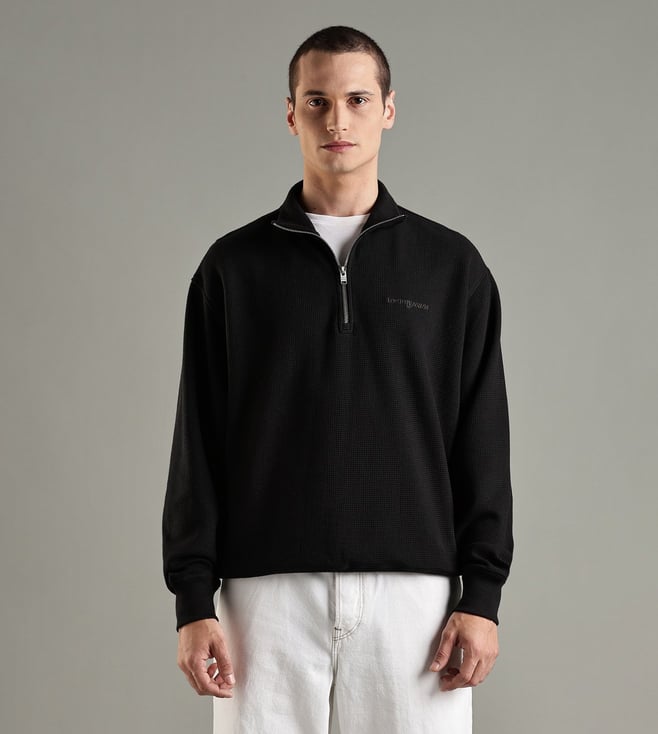 Europe Collection Black Cotton Relaxed Fit Logo Printed Sweatshirt