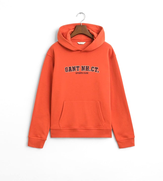 Boys Deep Orange Regular Fit Graphic Printed Sweatshirt