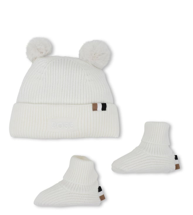 Boss Off White Textured Set of Beanie with Booties - 1m