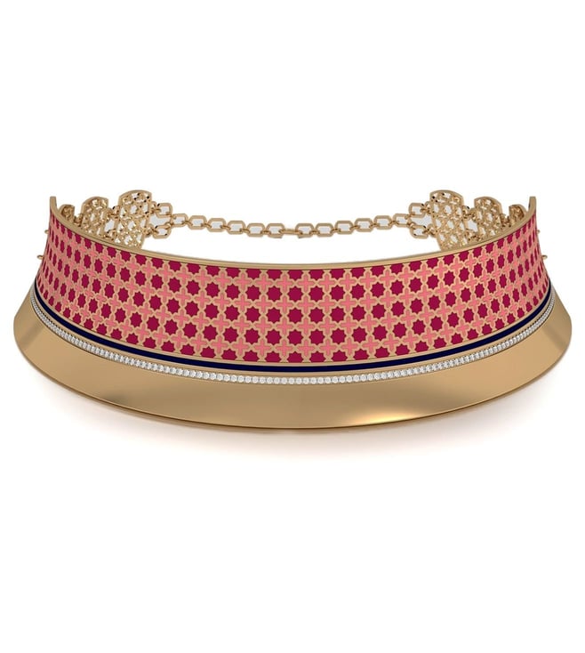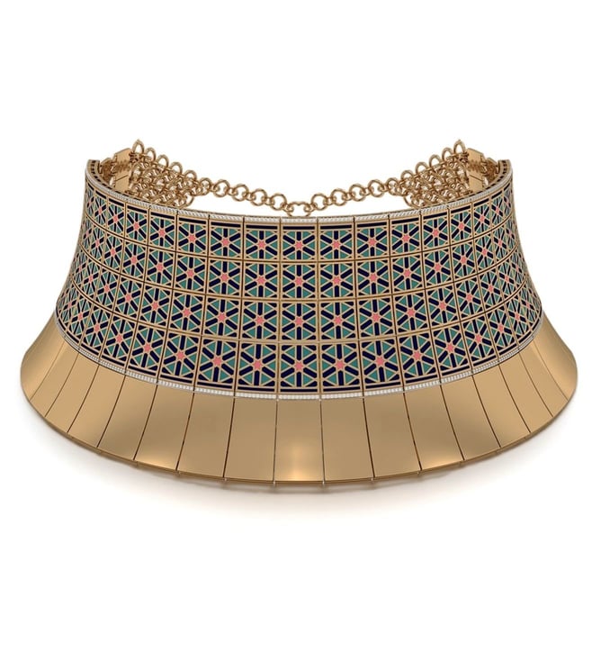 Yellow Gold Miraas Medium Aayshah Enamel Border Choker