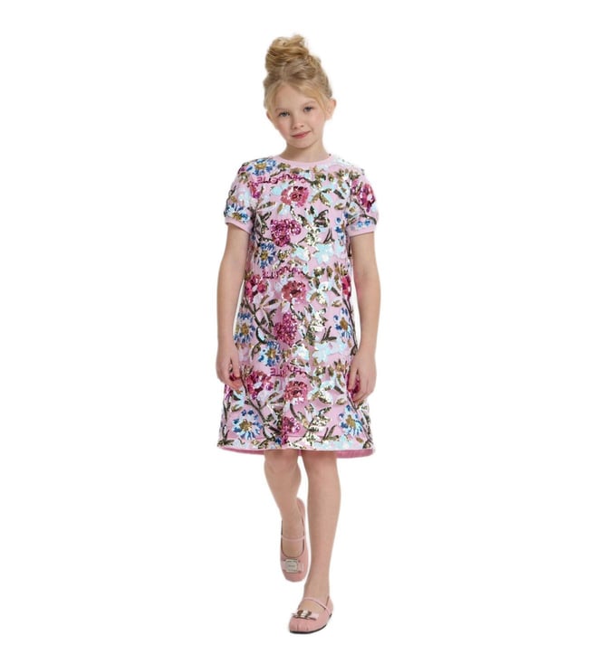 Girls Multicolor Diamonds Embellished Floral Sequence Regular Fit Dress