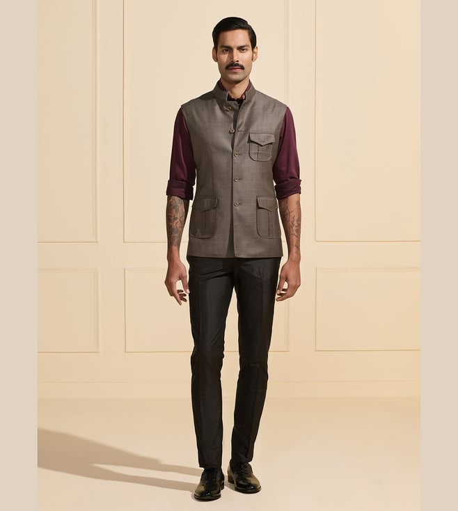 Raghavendra Rathod Tan Wool Comfort Fit Waist Coat