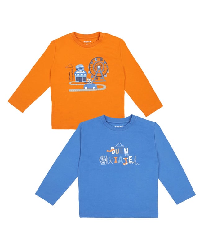 Kids Orange & Blue Van Burger Print Regular Fit T-Shirt (Pack of 2)
