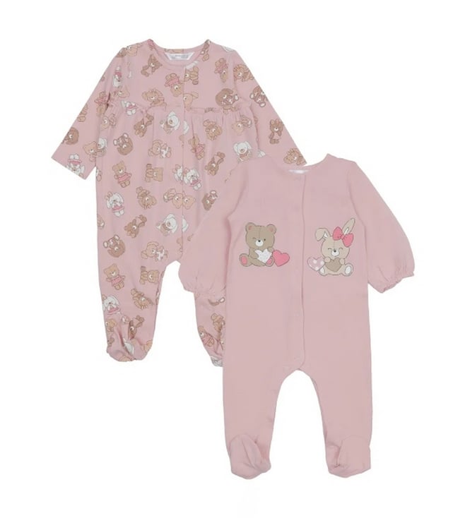 Kids Pink Bear & Bunny Printed Babygrow Set