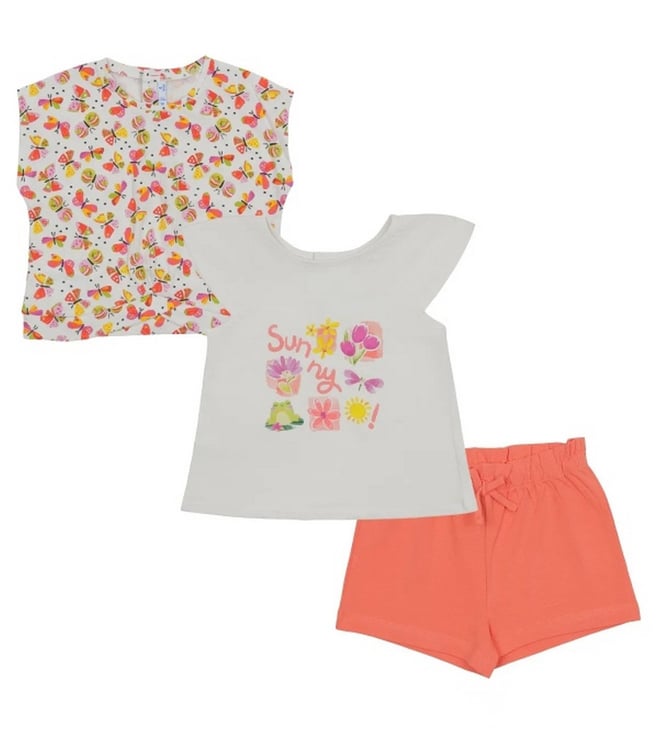 Kids White Flower & Butterfly Printed Shorts Set