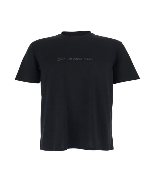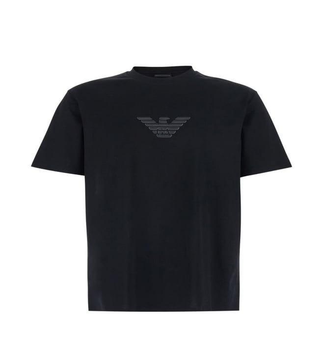 Black Round Neck Textured T-Shirt