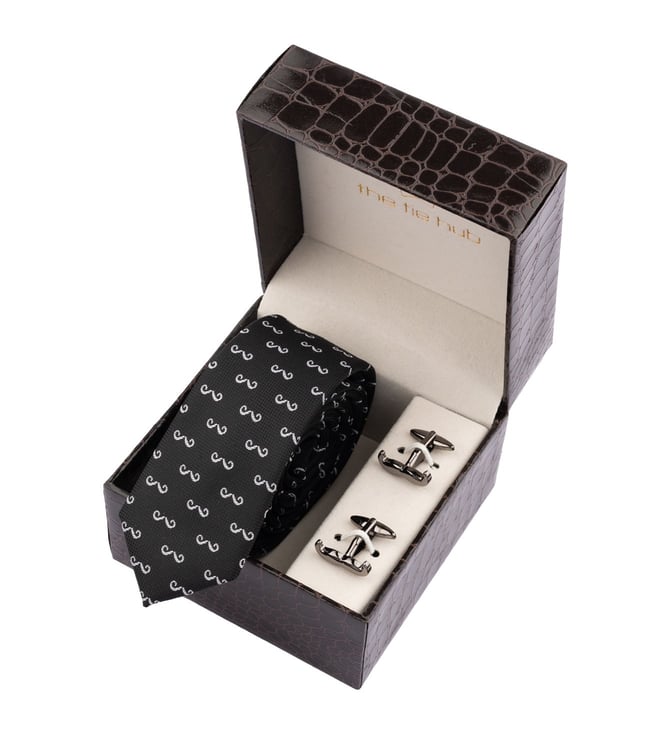 Black Slim Moustache Necktie with Cufflink Combo Set