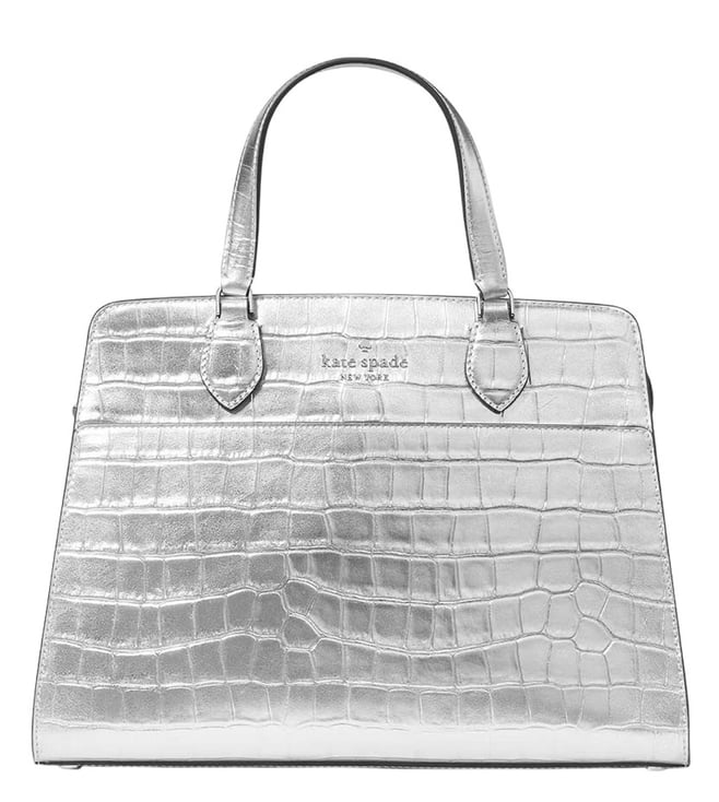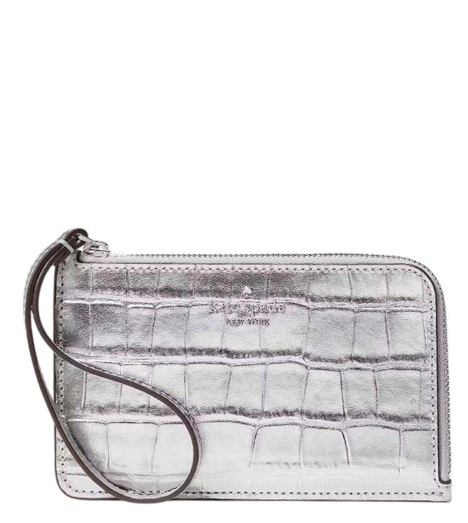 Silver Lucy Croc Embossed L-Zip Wristlet
