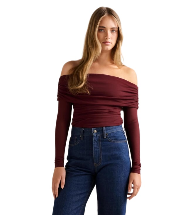 Kaia Ruched Mesh Bardot Top