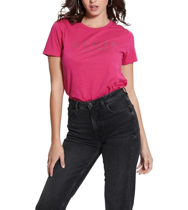 Women's Pink Cotton Printed Regular Fit Half Sleeves T-Shirt