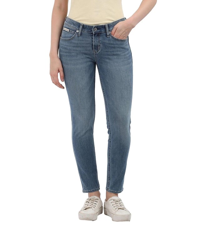 Blue Light-Wash Slim Fit Mid Rise Jeans