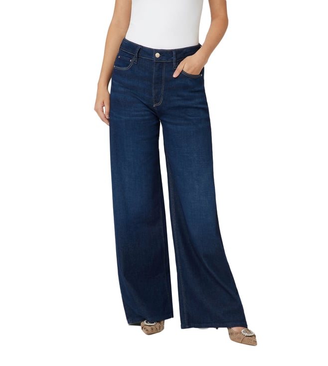 G12 Navy Blue Pleated Mid Rise Extra Wide Leg Fit Denim