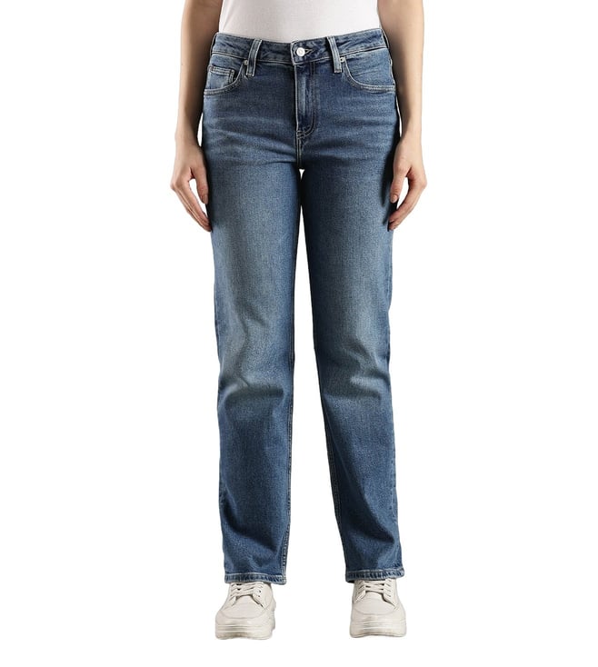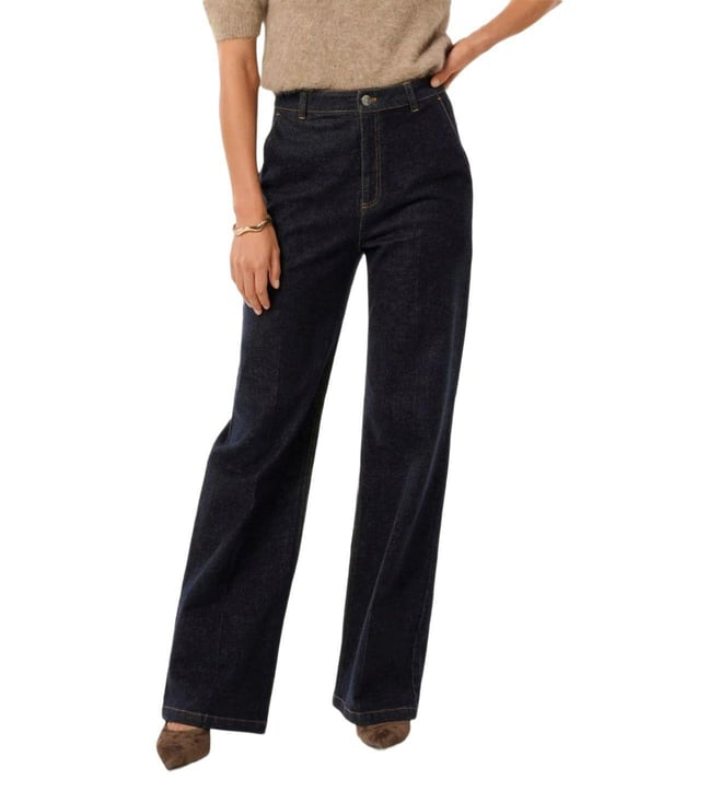 Dark Indigo Lin Cotton Staright Fit High Rise Jeans