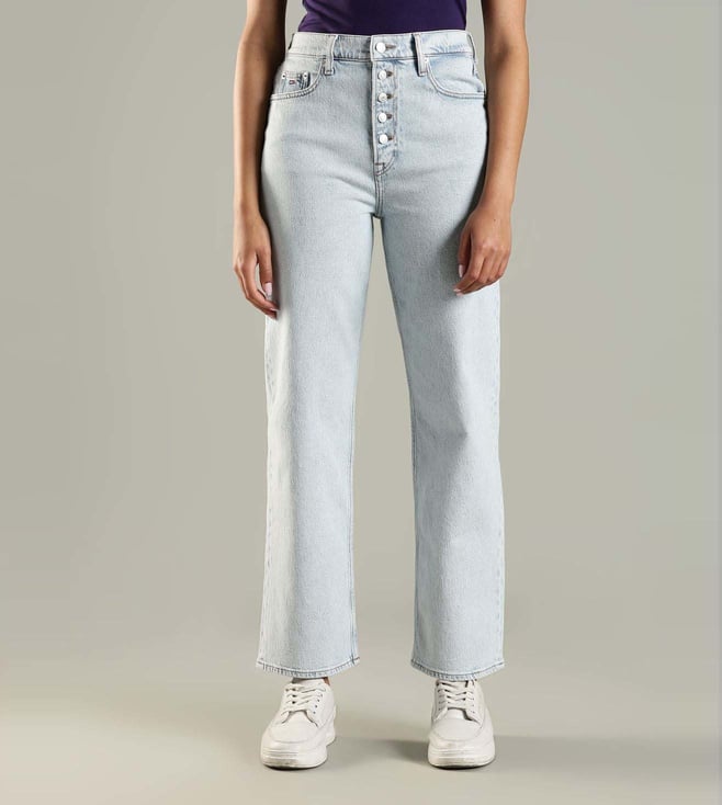 Denim Mid Light Blue Loose Fit Mid Rise Jeans