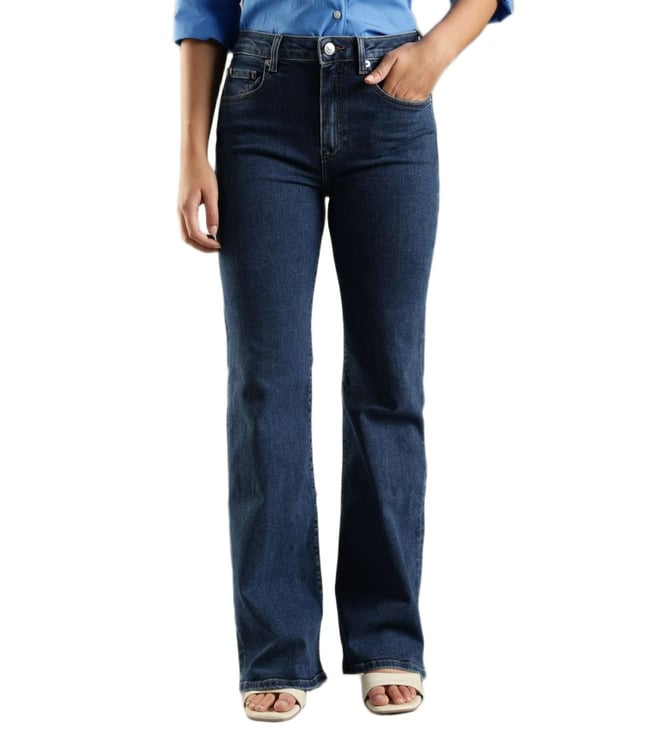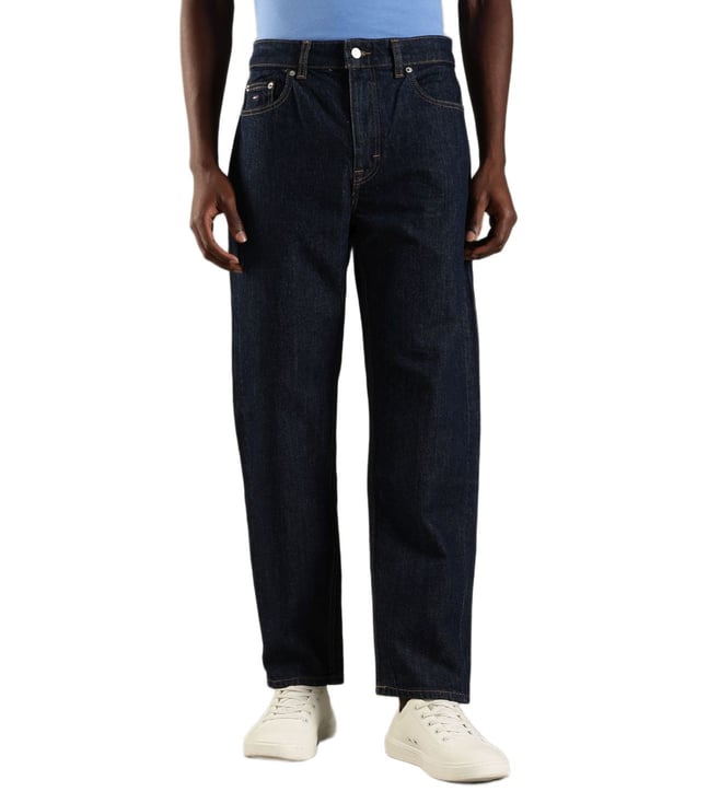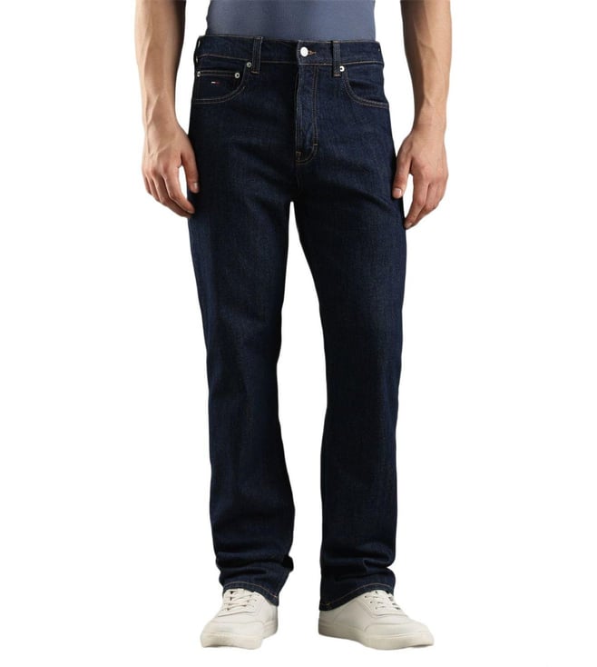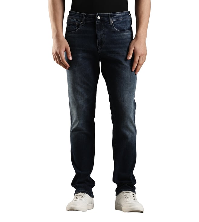 Europe Collection Blue Cotton Slim Fit Solid Jeans