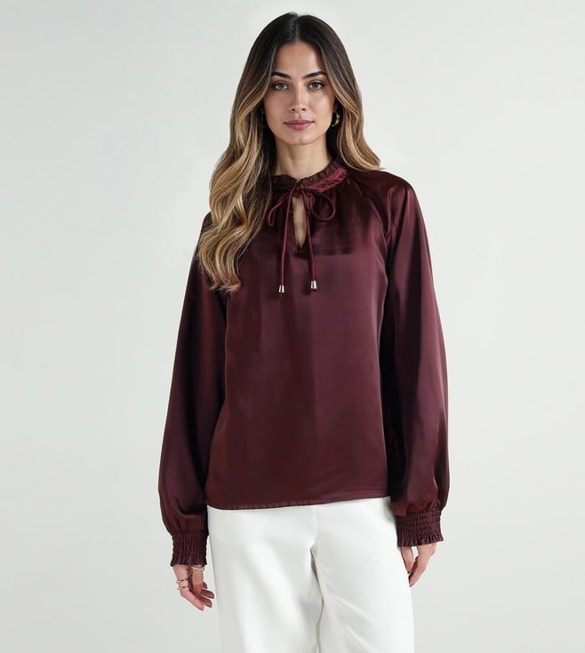 Maroon Cotton Relaxed Fit Logo Printed Top