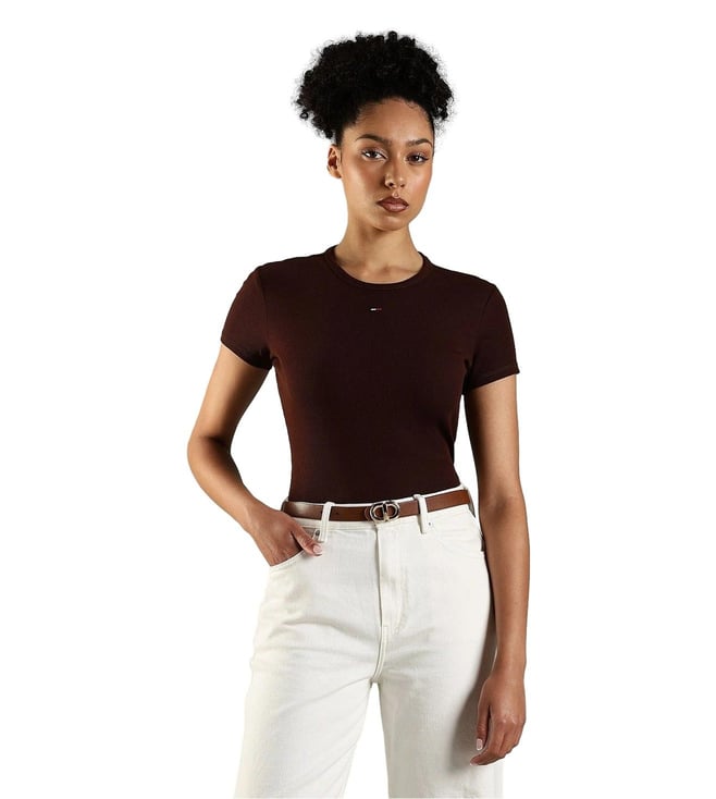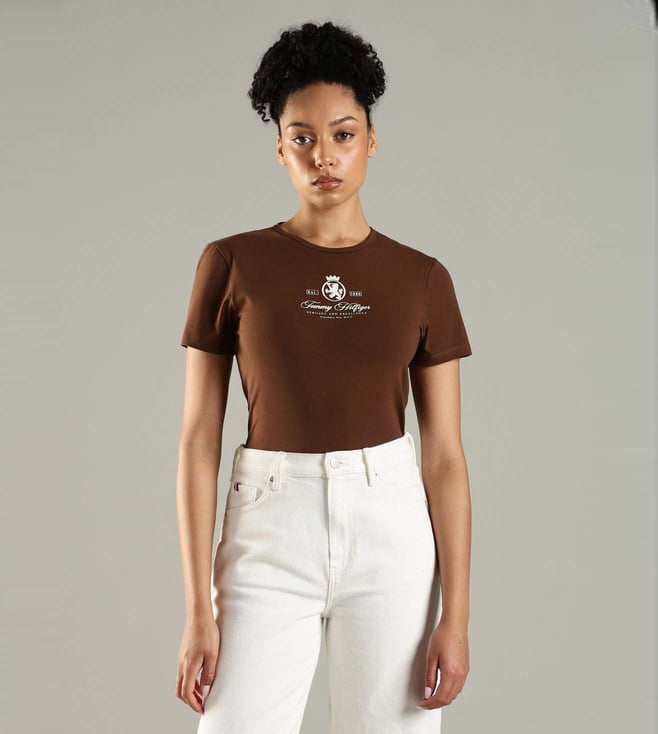 Brown Cotton Slim Fit Logo Printed T-Shirt