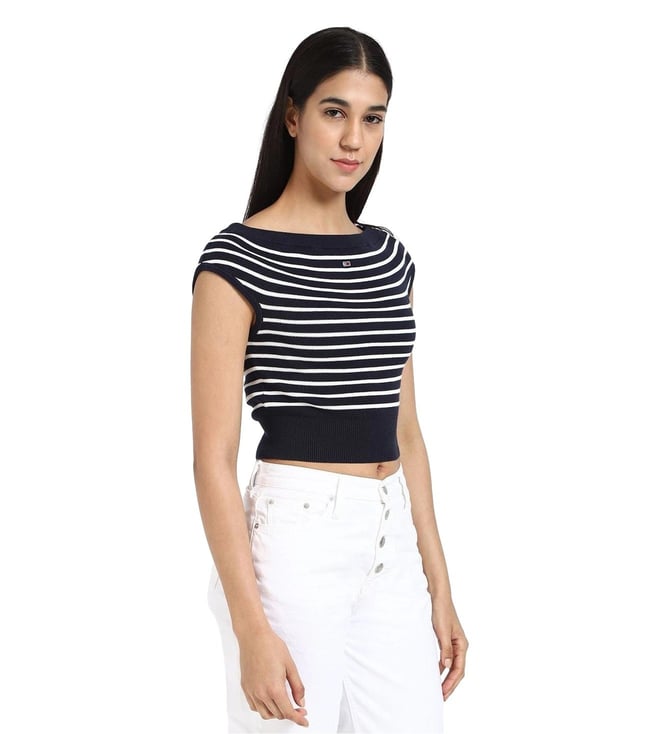 Vessel Blue Multi Striped Relaxed Fit Cotton Polo T-Shirt