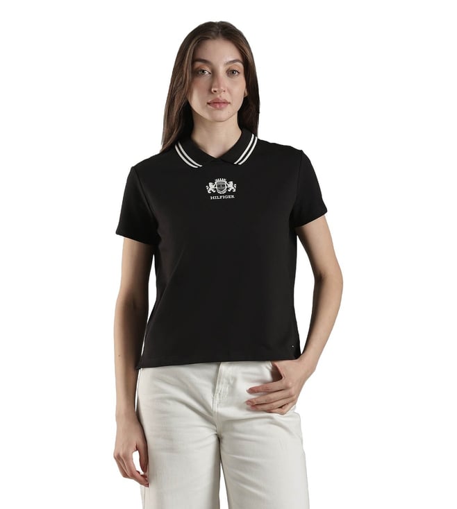 Black Cotton Slim Fit Logo Printed T-Shirt