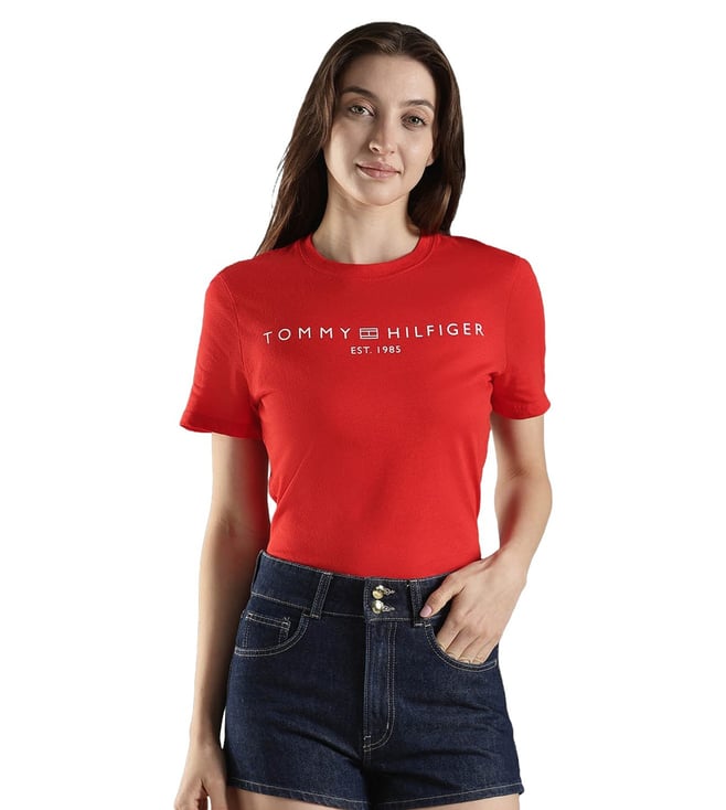 Maroon Cotton Relaxed Fit Logo Printed Top